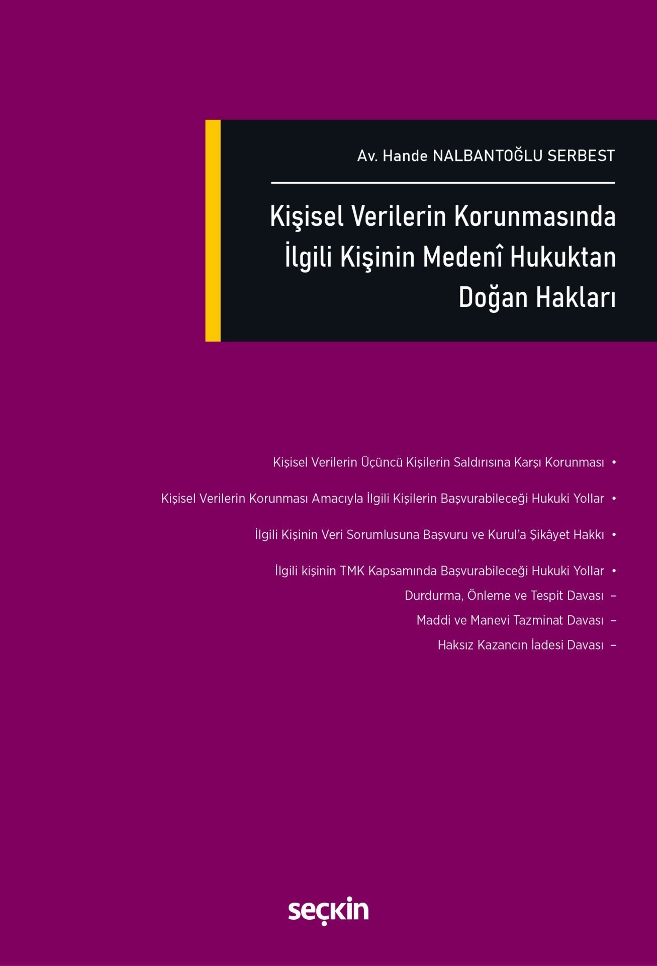 Modern çağın en önemli haklarından biri haline gelen "kişisel verilerin korunmasını isteme hakkı" dijitalleşmenin hızla arttığı, bireylerin her hareketinin veri haline getirildiği günümüzde birey özgürlükleri açısından büyük önem taşımaktadır. "Kişisel Verilerin Korunmasında İlgili Kişinin Medeni Hukuktan Doğan Hakları" adlı bu eser, kişisel verilerin korunması hakkını özel olarak medeni hukuk perspektifinden ele almaktadır. Kitapta, kişisel verilerin korunmasının kişilik hakkı, özel hayatın gizliliği ve hak ihlalleri karşısında kişilerin sahip oldukları dava türleri ile maddi ve manevi tazminat talepleri gibi medeni hukuk kurumlarıyla bağlantısı ayrıntılı şekilde incelenmektedir. Ayrıca kişisel verilerin ihlali durumunda kişilerin başvurabileceği idari yollar da okuyucuya yargı kararlarındaki güncel yaklaşımlar ile birlikte aktarılmaktadır. Eser, yalnızca kişisel verilerin korunmasına ilişkin teknik mevzuatla sınırlı kalmayıp, medeni hukuktan doğan hakların bu alandaki işlevini vurgulamakta, kişilerin hak arama yollarını teorik ve pratik yönleriyle açıklamaktadır. Hem hukuk fakültesi öğrencileri ve akademisyenler hem de uygulayıcılar için değerli bir başvuru kaynağı niteliğinde olan bu çalışma, kişisel verilerin korunması ile medeni hukuk arasındaki bağı derinlemesine ortaya koyarak okuyucuya geniş bri perspektif sunmaktadır.