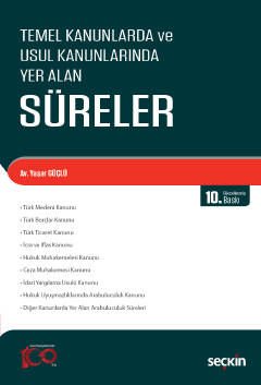 Kitapta; Türk Medeni Kanunu, Türk Borçlar Kanunu, Türk Ticaret Kanunu, İcra ve İflas Kanunu, Hukuk Muhakemeleri Kanunu, Ceza Muhakemesi Kanunu ve İdari Yargılama Usulü Kanunu'nun yanı sıra bu baskıda; Hukuk Uyuşmazlıklarında Arabuluculuk Kanunu ile İş Kanunu ve İş Mahkemeleri Kanunu'nda geçen arabuluculuk sürelerine yer verilmiştir.