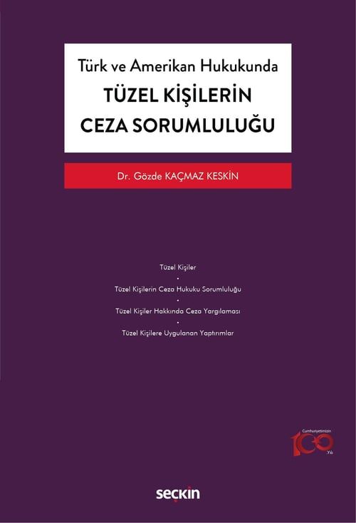 Bu kitapta, tüzel kişiler hakkında birtakım yaptırımlar uygulanmasını kabul etmekle birlikte cezalandırılmasını kabul etmeyen Türk hukuku düzenleme ve uygulamaları ile tüzel kişileri cezalandıran Amerikan hukuku düzenleme ve uygulamaları karşılaştırmalı olarak incelenmiş, aynı zamanda çeşitli ülke uygulamalarına da değinilmiştir.